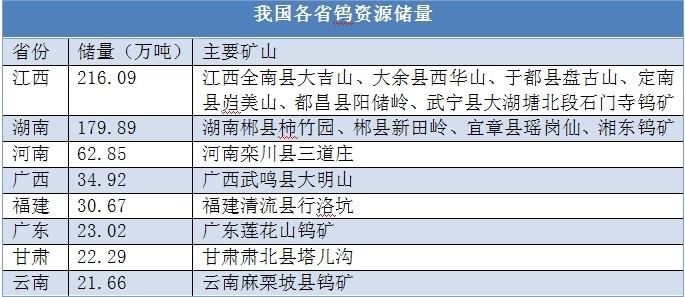 钨资源分布和产量