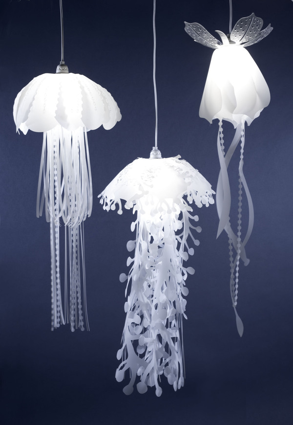 海底世界有很多美丽的生物,水母便是其中只有一,设计师Roxy Towry-Russell的这组灯具设计灵感便来源于水母,柔和飘逸的乳白色主体加上底部形态各异的长长流苏,如游弋着的水母般飘逸灵动,让人仿佛置身于海底世界,这样一盏华丽的美灯放在居室里,一定非常浪漫。这个不同寻常的设计会让您的家里看起来像海底世界,如果你喜欢...