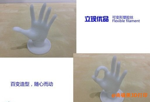 Flexible可变形塑胶丝是立现优品2014年3月新推环保无毒材料,主要特点是材料柔韧性好,反复折叠拉伸不会开裂,同时可通过电吹风加热或热水浸泡后重新塑形,产品的使用用途想象空间较大,可广泛应用于有软胶需求和后期有重新塑形需求的行业使用,网络上比较热门的纽约3D打印时装就是用此种材料打印制作。测试所用打印机:Make...