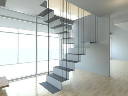 受设计风潮的影响,“悬空”式楼梯当下很是流行。在设计师的巧妙安排下,通过透明玻璃栏杆、嵌入式踏板、钢索悬挂台阶、螺旋结构等新奇手法展现出来的楼梯给人们带来的不仅是装饰空间的华丽,更是视觉上的享受和冲击。