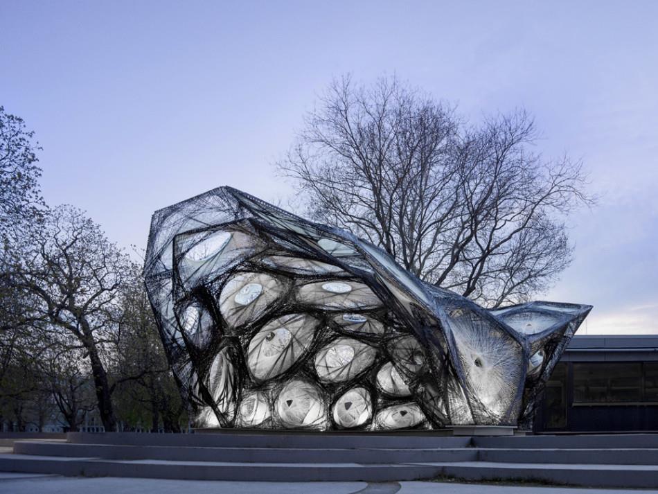 这个亭子由斯图加特大学计算设计研究所的团队设计,灵感来自甲虫的鞘翅。 对研究人员来说,设计亭子是一种对设计、制造趋势进行研究的方式。 今年,研究人员希望了解如何在不使用模具的情况下,用玻璃和碳纤维制造建筑结构的方法。 亭子上的编织组件模拟了甲虫的鞘翅。鞘翅的质地坚硬,但重量很轻,可以为后翅提供保护。一个...