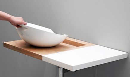 这个设计是专门为狭小空间设置的,两个简单的动作就能将其打造成一个适宜特定家居环境的家具。它呈V字形,线条干净简单现代。经过推拉,沙发可以变身为咖啡桌。