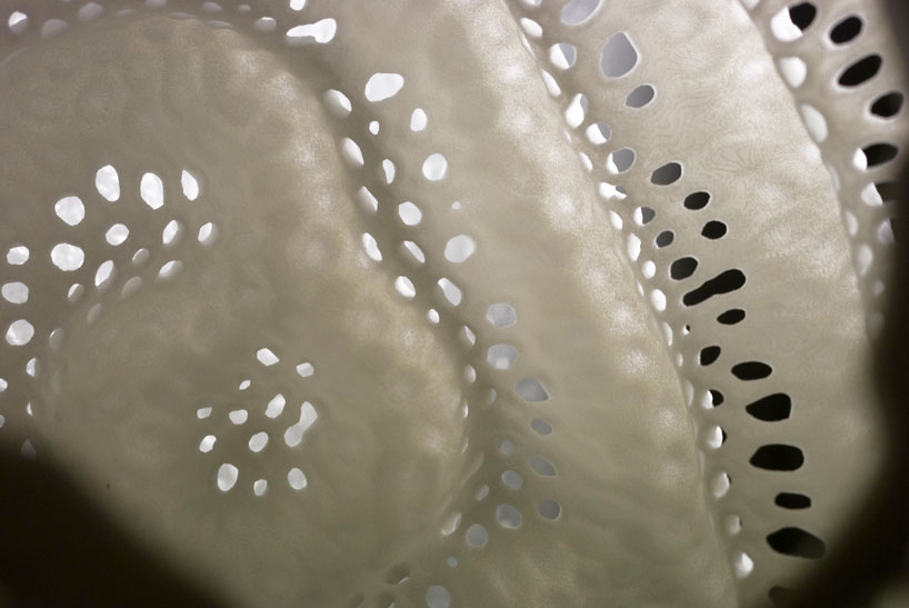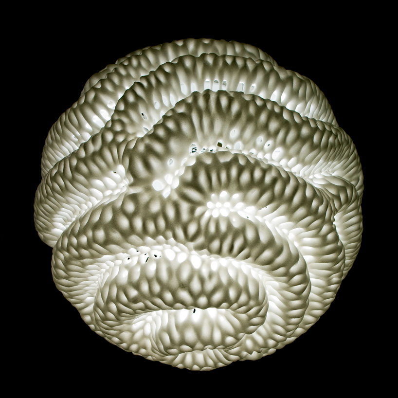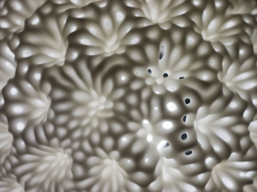 美国设计团队nervous system(jessica rosenkrantz 和jesse louis-rosenberg)最近设计了一组新的灯具和瓷器作品“反应(reaction)”,这组作品将自然,科学与技术元素相结合,使用了最新的三维打印技术和交互媒介。“反应”这一设计基于一个化学系统“反应扩散方程”,这一原理通常用来描述不同结构种类的合成假设。这一理...